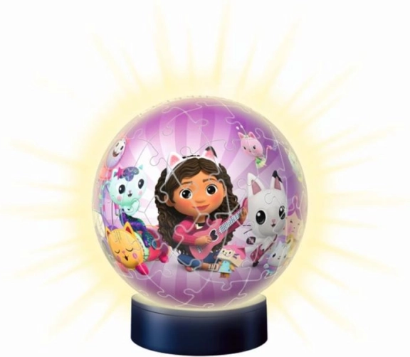 Η φωτιζόμενη 3D puzzleball της σειράς Nachtlicht θα ενθουσιάσει μικρούς και μεγάλους φίλους των παζλ και του κόσμου του Μαγικού Σπιτιού της Γκάμπι. Μπορείτε να συναρμολογήσετε με βάση την εικόνα ή με βάση τους αριθμούς στην πίσω πλευρά των κομματιών – ιδανικό για την ανάπτυξη υπομονής, λεπτών κινητικών δεξιοτήτων και χωρικής αντίληψης.
