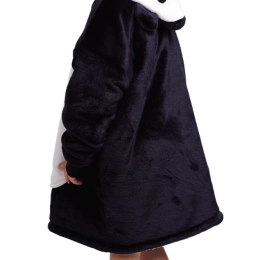 Χάρη στη μεγάλη κουκούλα και τη τεράστια μπροστινή τσέπη, κεφάλι και χέρια μένουν ζεστά. Το μήκος μέχρι τα γόνατα δεν περιορίζει την κίνηση και η κουβέρτα-φούτερ είναι ιδανική για ξεκούραση στον καναπέ, παιχνίδι και κατασκήνωση. Εύκολη φροντίδα: πλύσιμο στους 30 °C και στέγνωμα σε χαμηλή θερμοκρασία.
