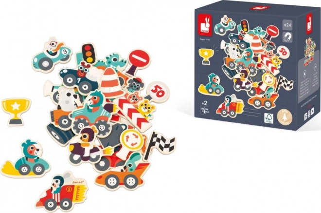 Ανακαλύψτε ένα σετ από 24 ξύλινα μαγνητάκια σε σχήμα αυτοκινήτων, που φέρνουν διασκέδαση σε κάθε μαγνητική επιφάνεια. Αφήστε τα παιδιά να ζήσουν εκπληκτικές αγωνιστικές περιπέτειες απευθείας στο ψυγείο ή στον πίνακα ανακοινώσεων.