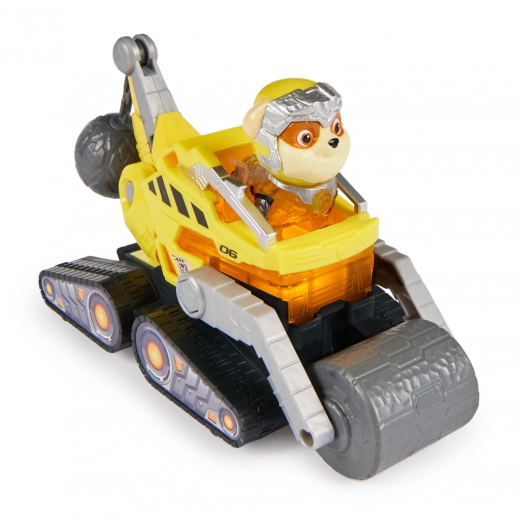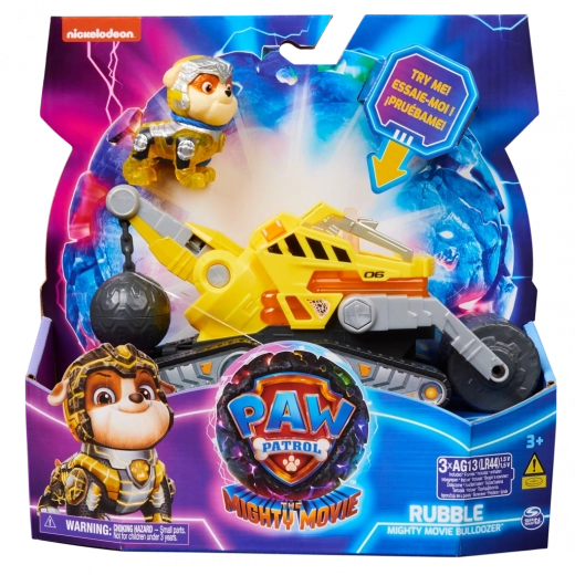 Ζήστε συναρπαστικές αποστολές διάσωσης με τον Rubble και το κατασκευαστικό του όχημα από την ταινία PAW PATROL: Η ΥΠΕΡΠΑΡΑΓΩΓΗ. Το ανθεκτικό όχημα με μπροστινό κύλινδρο, μπάλα κατεδάφισης, αναβόσβηστα φώτα και ηχητικά εφέ (μπαταρίες στη συσκευασία) είναι ιδανικό για μικρούς θαυμαστές. Τοποθετώντας τη φιγούρα στο κάθισμα ενεργοποιείται πολύσημο φωτισμό στο όχημα, που κάνει κάθε αποστολή ακόμη πιο συναρπαστική.