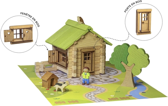 Ανακαλύψτε τη μαγεία των κλασικών ξύλινων κατασκευών JEUJURA. Τα κομμάτια από οξιά και πεύκο εφαρμόζουν με ακρίβεια μεταξύ τους και επιτρέπουν στα παιδιά να χτίζουν ρεαλιστικά σπιτάκια με στέγη, πόρτες, παράθυρα και παντζούρια. Περιλαμβάνεται και σταθερή βάση για σταθερό παιχνίδι και έκθεση.