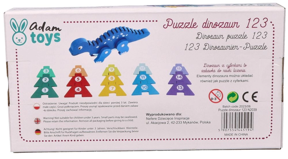 Ανακαλύψτε τη μαγεία του ξύλινου παζλ δεινοσαύρου, που συνδυάζει τη διασκέδαση με τη μάθηση. Αυτό το δημιουργικό παζλ περιλαμβάνει πολύχρωμα κομμάτια που τα παιδιά μπορούν να τοποθετήσουν στην πλάτη του δεινοσαύρου, μαθαίνοντας να αναγνωρίζουν αριθμούς και βελτιώνοντας τον συντονισμό χεριού-ματιού. Το παιχνίδι είναι κατασκευασμένο από ποιοτικό ξύλο, διασφαλίζοντας τη μακρά διάρκεια ζωής και την ασφάλεια κατά το παιχνίδι.