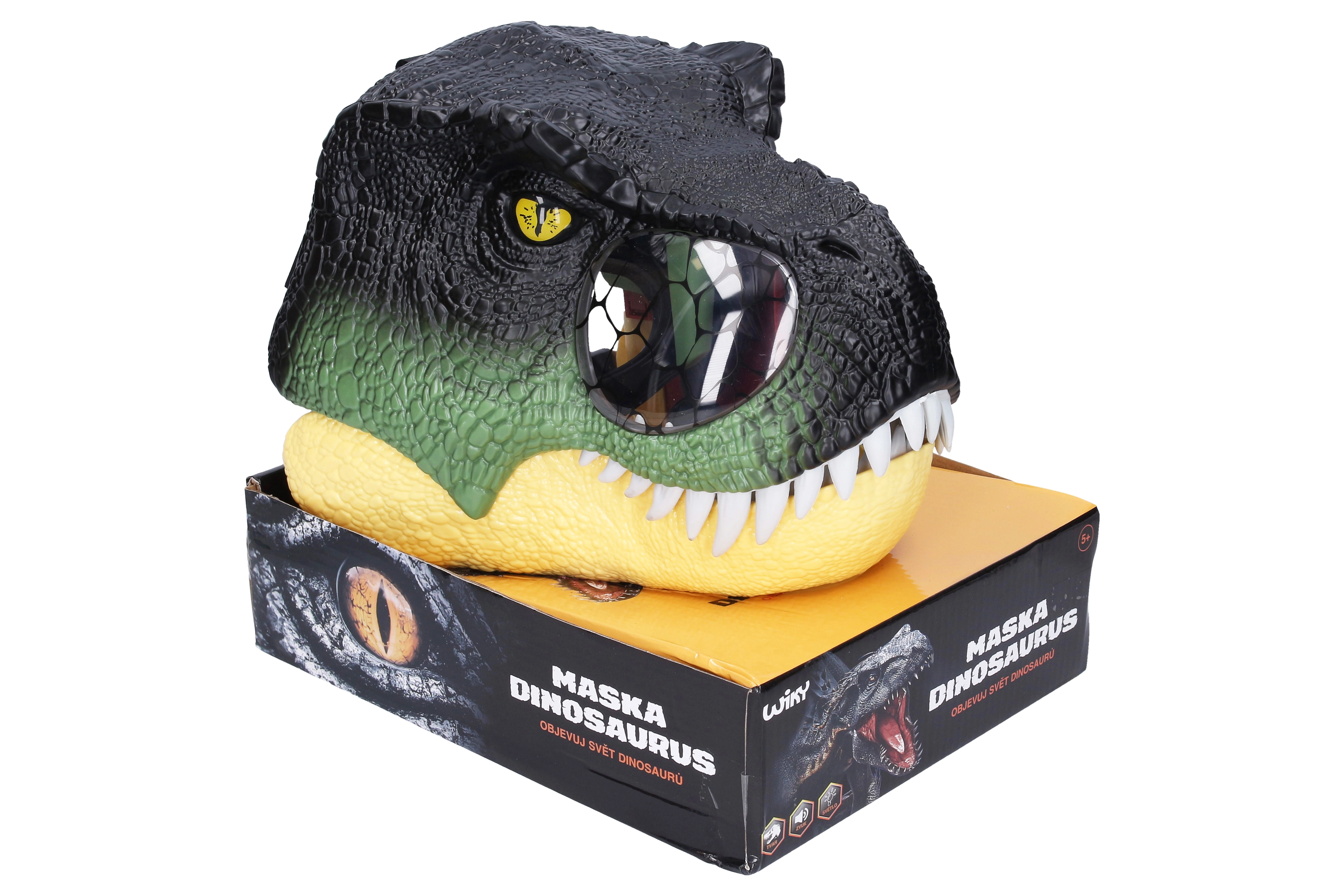Ρεαλιστική μάσκα δεινοσαύρου που μεταμορφώνει κάθε παιδί σε προϊστορικό αρπακτικό. Με την κίνηση του κεφαλιού ανοίγει η γνάθος, ανάβουν τα μάτια και ενεργοποιείται το βρυχηθμό του δεινοσαύρου. Περιλαμβάνονται 3× μπαταρίες AG13, ώστε η διασκέδαση να ξεκινήσει αμέσως.