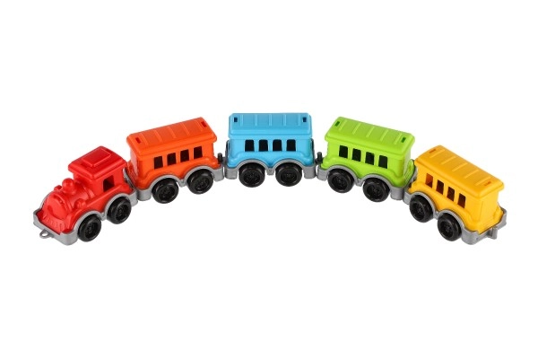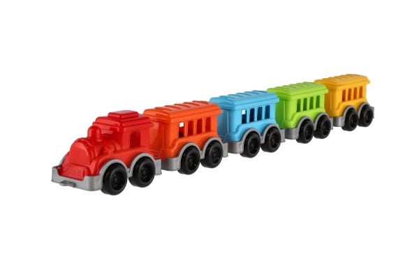Πολύχρωμο πλαστικό τρενάκι με ατμομηχανή και 4 βαγονάκια που θα ενθουσιάσει αγόρια και κορίτσια. Χάρη στο συμπαγές μέγεθος για παιδικά χέρια χειρίζεται εύκολα, υποστηρίζει τη λεπτή κινητικότητα και τη φαντασία και είναι ιδανικό για το σπίτι και τα ταξίδια.