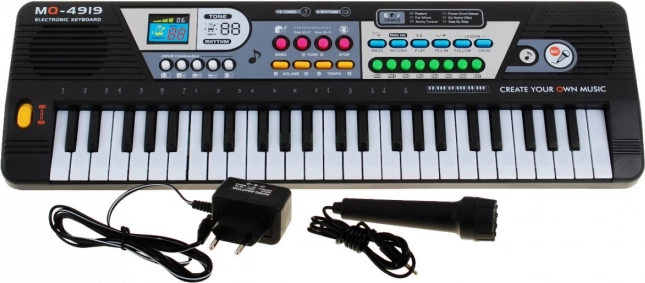 Διασκεδαστικό και εύχρηστο πληκτρολόγιο για παιδιά από 5 ετών με 49 πλήκτρα, ενσωματωμένο μικρόφωνο, λειτουργία ηχογράφησης και πλούσια γκάμα από ήχους, ρυθμούς και demo μελωδίες. Χάρη στην τροφοδοσία από ρεύμα ή μπαταρίες, είναι ιδανικό για το σπίτι και για ταξίδια.