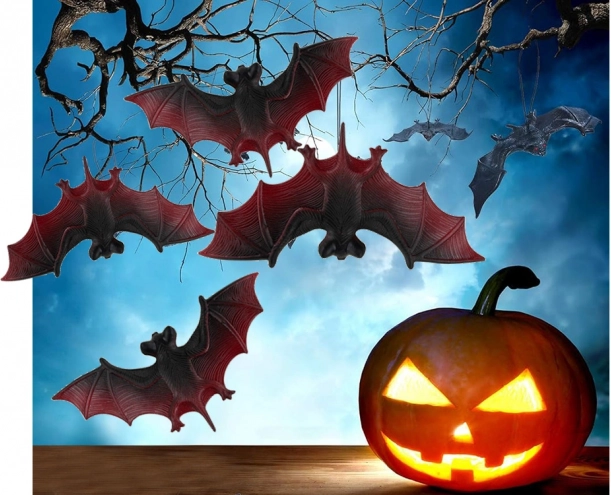 Δημιουργήστε μια τρομακτική ατμόσφαιρα Halloween σε δευτερόλεπτα! Αυτό το σετ με 4 ρεαλιστικές νυχτερίδες από ανθεκτικό πλαστικό/λάστιχο είναι ιδανικό για διακόσμηση σπιτιού, κήπου και πάρτι. Απλώς κρεμάστε τις σε κλαδί, ιστό αράχνης ή ράφι και αποκτήστε εντυπωσιακές διακοσμήσεις με έντονα μαύρο‑κόκκινα φτερά.