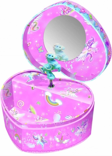 Αποθηκεύστε τα δαχτυλίδια, τα βραχιόλια και άλλους πολύτιμους μικροθησαυρούς σε ένα κοσμηματοκιβώτιο που χαρίζει χαρά στο βλέμμα και στην ακοή. Με το κούρδισμα του μηχανισμού και το άνοιγμα του καπακιού, ακούγεται μια ευχάριστη μελωδία που υπογραμμίζει τη μαγική ατμόσφαιρα του παιδικού δωματίου.