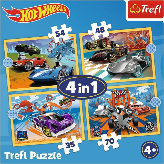 Σετ τεσσάρων παζλ με θέματα από τη θρυλική σειρά HOT WHEELS της Trefl που θα ενθουσιάσει παιδιά από 4 ετών. Ο διαφορετικός αριθμός κομματιών (35, 48, 54 και 70) υποστηρίζει το σταδιακό μάθημα, αναπτύσσει τη λεπτή κινητικότητα, τη συγκέντρωση και την παρατηρητικότητα. Χάρη στην σταθερή χάρτινη ποιότητα και τα ζωντανά χρώματα, τα παιδιά απολαμβάνουν διασκέδαση στο σπίτι και στο ταξίδι.