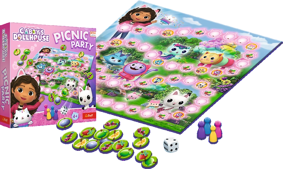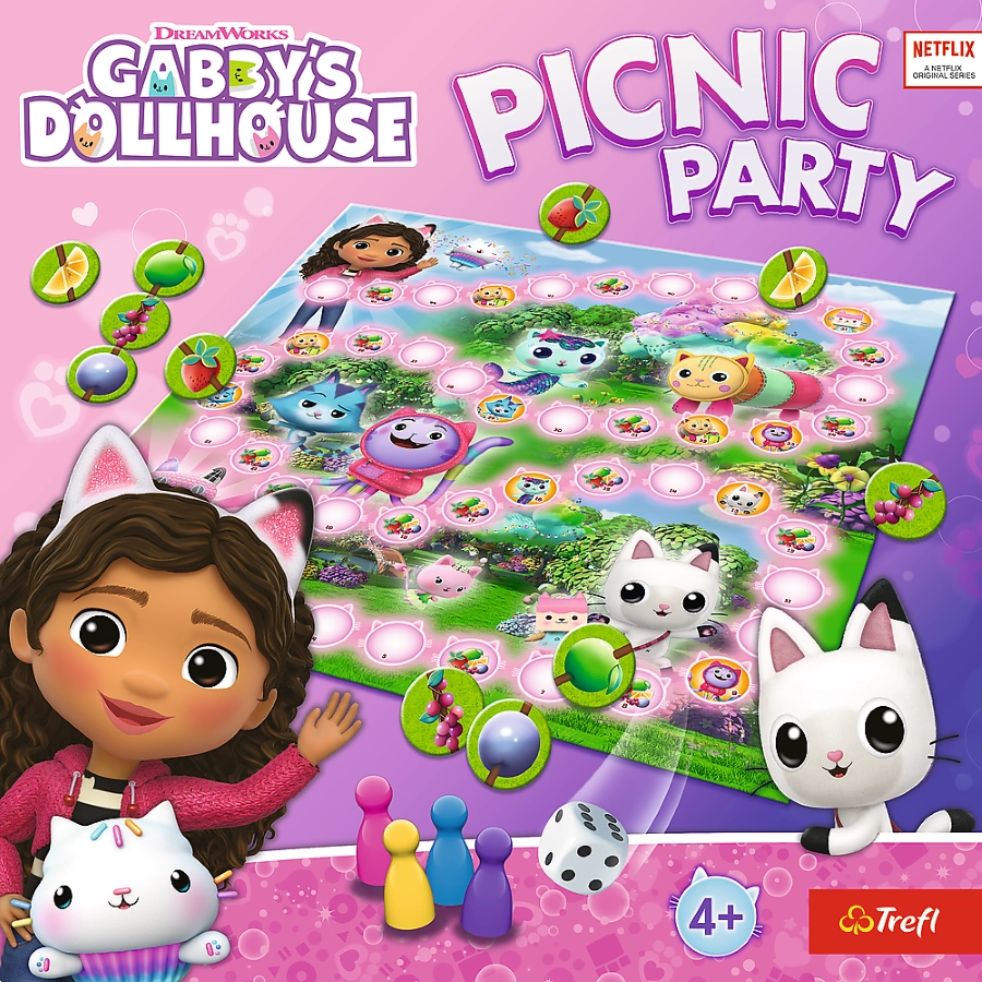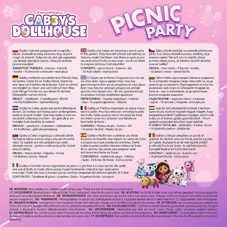 Το μαγικό σπίτι της Γκάμπι: Πικνίκ πάρτι είναι ένα διασκεδαστικό επιτραπέζιο παιχνίδι, όπου η Γκάμπι και οι φίλοι της οργανώνουν ένα κήπινο πικνίκ πάρτι. Μάζεψε τα φρούτα που θα βρεις και φτιάξε λαχταριστά φρουτένια σουβλάκια!