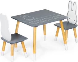 Περιλαμβάνει δύο σταθερές καρέκλες με άνετα καθίσματα από MDF. Χάρη στις σωστά επιλεγμένες διαστάσεις των καρεκλών και του τραπεζιού, εξασφαλίζεται μέγιστη άνεση για το παιδί.