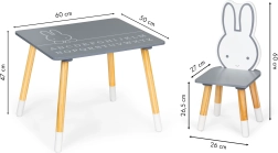 Το παιδικό τραπεζάκι και οι καρέκλες Ecotoys είναι εξαιρετική επιλογή για όλους τους μικρούς καλλιτέχνες και εξερευνητές. Το τραπεζάκι με μοτίβο κουνελιού προσφέρει όχι μόνο χώρο για ζωγραφική και παιχνίδι, αλλά και για εκμάθηση της αλφαβήτας. Χάρη στον απλό σκανδιναβικό σχεδιασμό, ταιριάζει περίφημα σε κάθε παιδικό δωμάτιο ή αίθουσα παιχνιδιού.