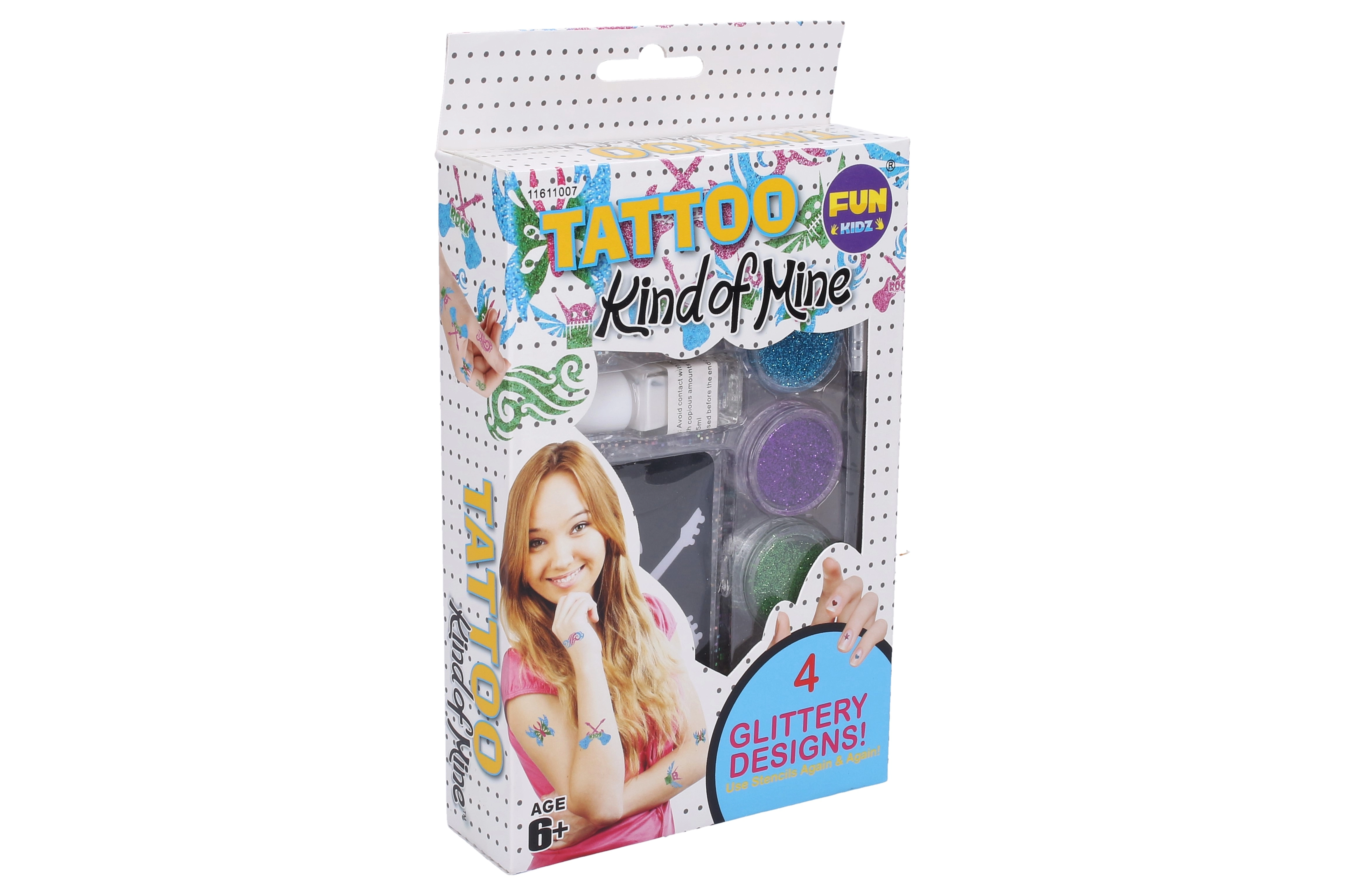 Μεταμορφώσου σε λίγες στιγμές σε λαμπερό αστέρι με αυτό το σετ προσωρινών τατουάζ. Θα βρεις μέσα 4 επαναχρησιμοποιούμενα στένσιλ, glitter σε 3 χρώματα, κόλλα για τατουάζ και πινέλο για εύκολη εφαρμογή – ιδανικό για κορίτσια από 6 ετών.