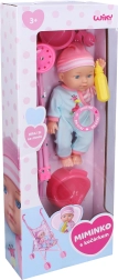 Χαριτωμένο μωράκι με ηχητικά εφέ και πτυσσόμενο καροτσάκι που θα ενθουσιάσει κάθε μικρό φροντιστή. Το σετ περιλαμβάνει πλούσια αξεσουάρ για παιχνίδι – μίνι καροτσάκι, μπολάκι με μαχαιροπίρουνα, γιογιό και μπιμπερό. Με το πάτημα της κοιλίτσας ακούγονται ηχητικά εφέ. Οι μπαταρίες 3× AG13 είναι περιλαμβανόμενες στη συσκευασία.