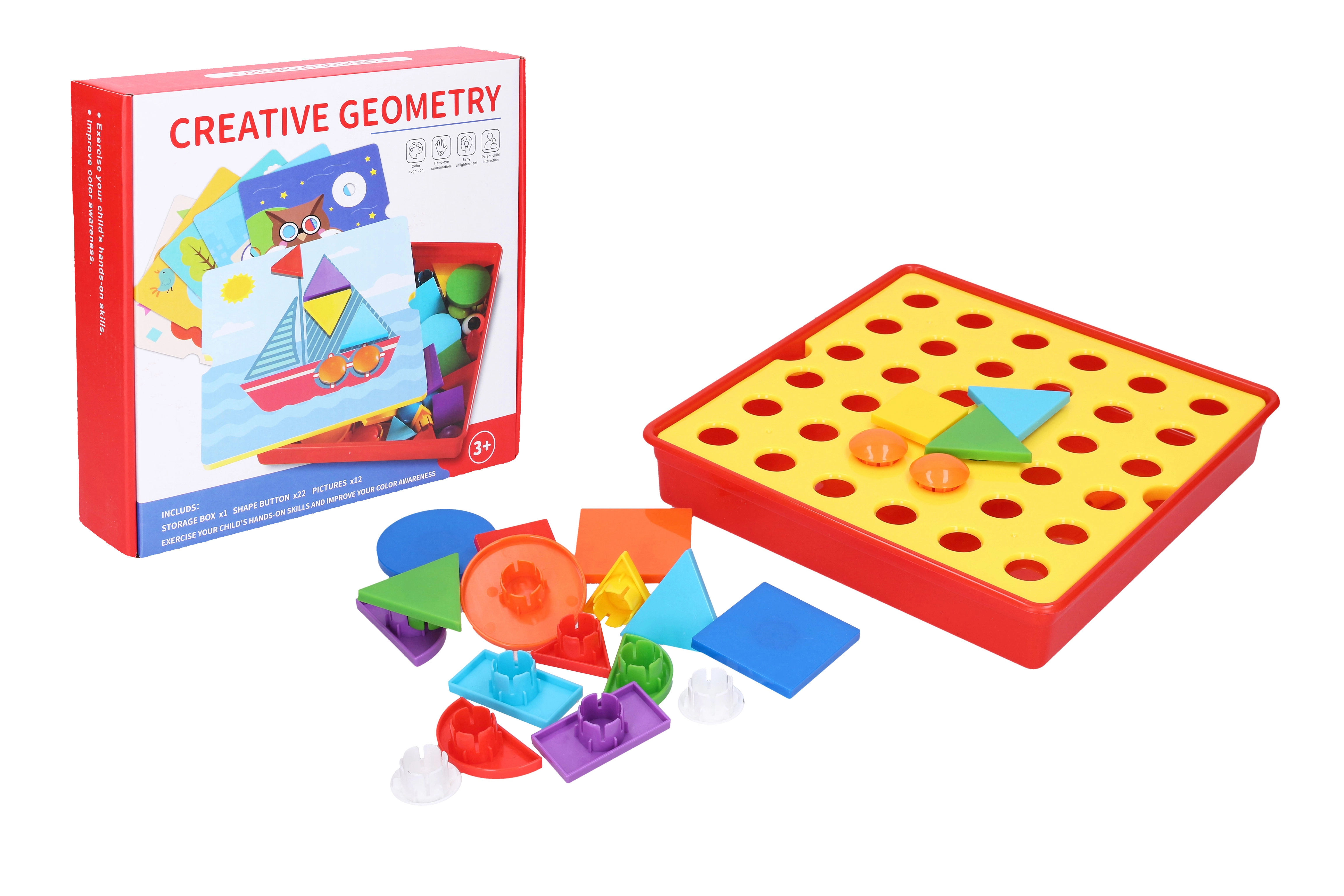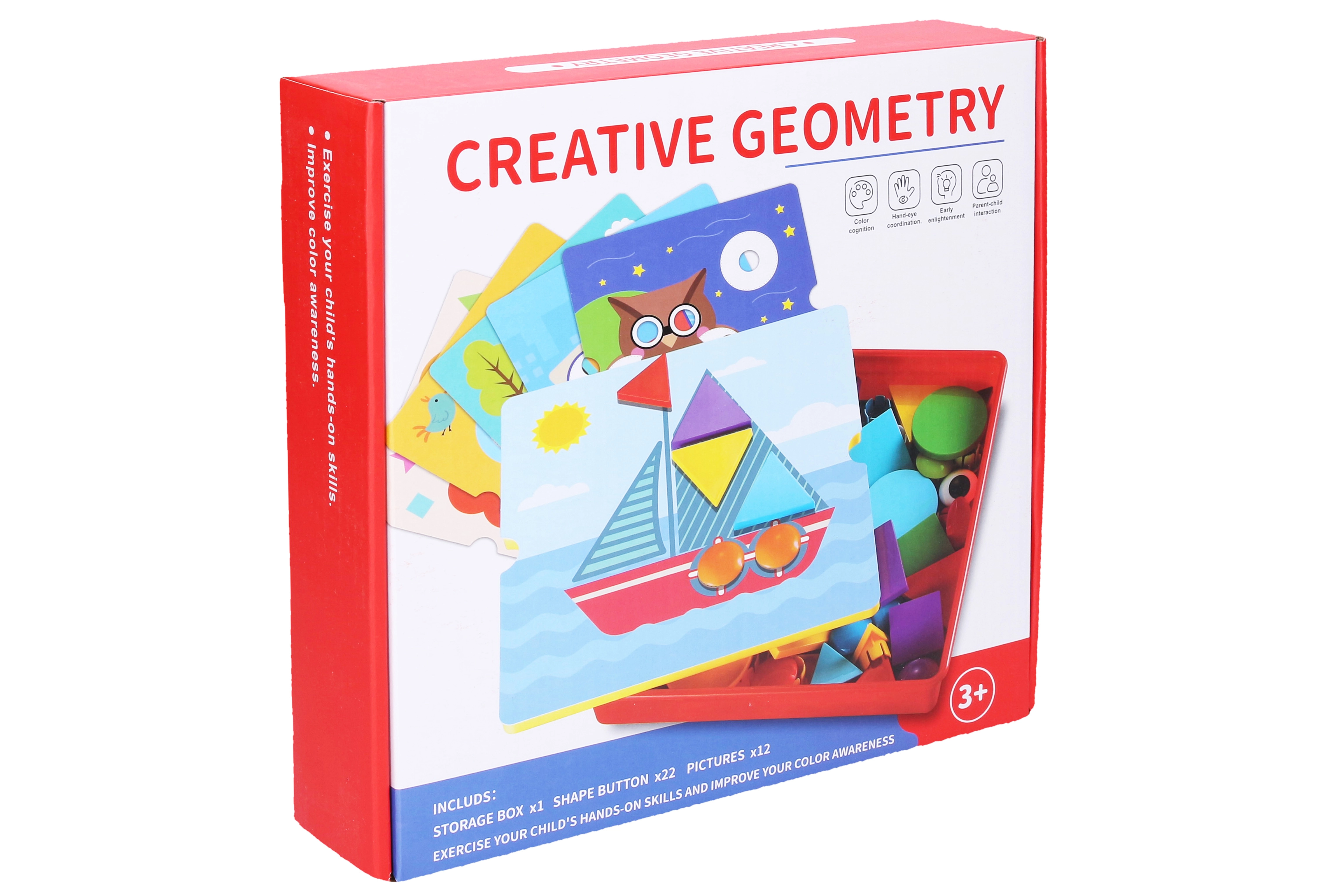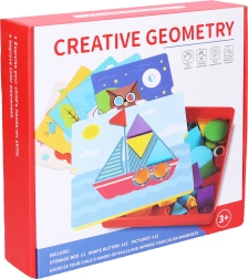 Δημιουργικό μωσαϊκό με γεωμετρικά σχήματα για παιδιά που υποστηρίζει τη λεπτή κινητικότητα, τη λογική σκέψη και τη δημιουργικότητα. Η συσκευασία περιλαμβάνει βάση 25 × 25 cm, 22 σχήματα και 12 πρότυπα για εύκολη σύνθεση εικόνων.
