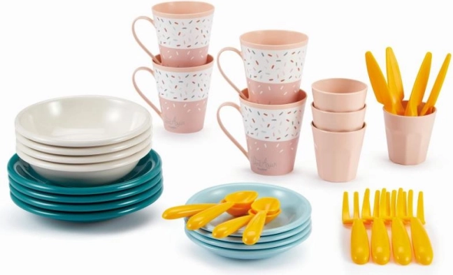 Αυτό το πλαστικό σετ σκευών είναι ιδανικό για όσους θέλουν να οργανώσουν ένα ανεπίσημο πικνίκ ή ένα απόγευμα στον κήπο. Τα 32 τεμάχια του σετ περιλαμβάνουν πιάτα, πιατάκια γλυκού, μπολ, κούπες, ποτήρια και μαχαιροπήρουνα, όλα από ελαφρύ και ανθεκτικό πλαστικό. Το πρακτικό κουτί βοηθά στην εύκολη μεταφορά και τα παιδιά μπορούν με ασφάλεια να συμμετέχουν στην προετοιμασία του φαγητού. Το κουτί λειτουργεί επίσης ως τραπεζάκι σερβιρίσματος.
