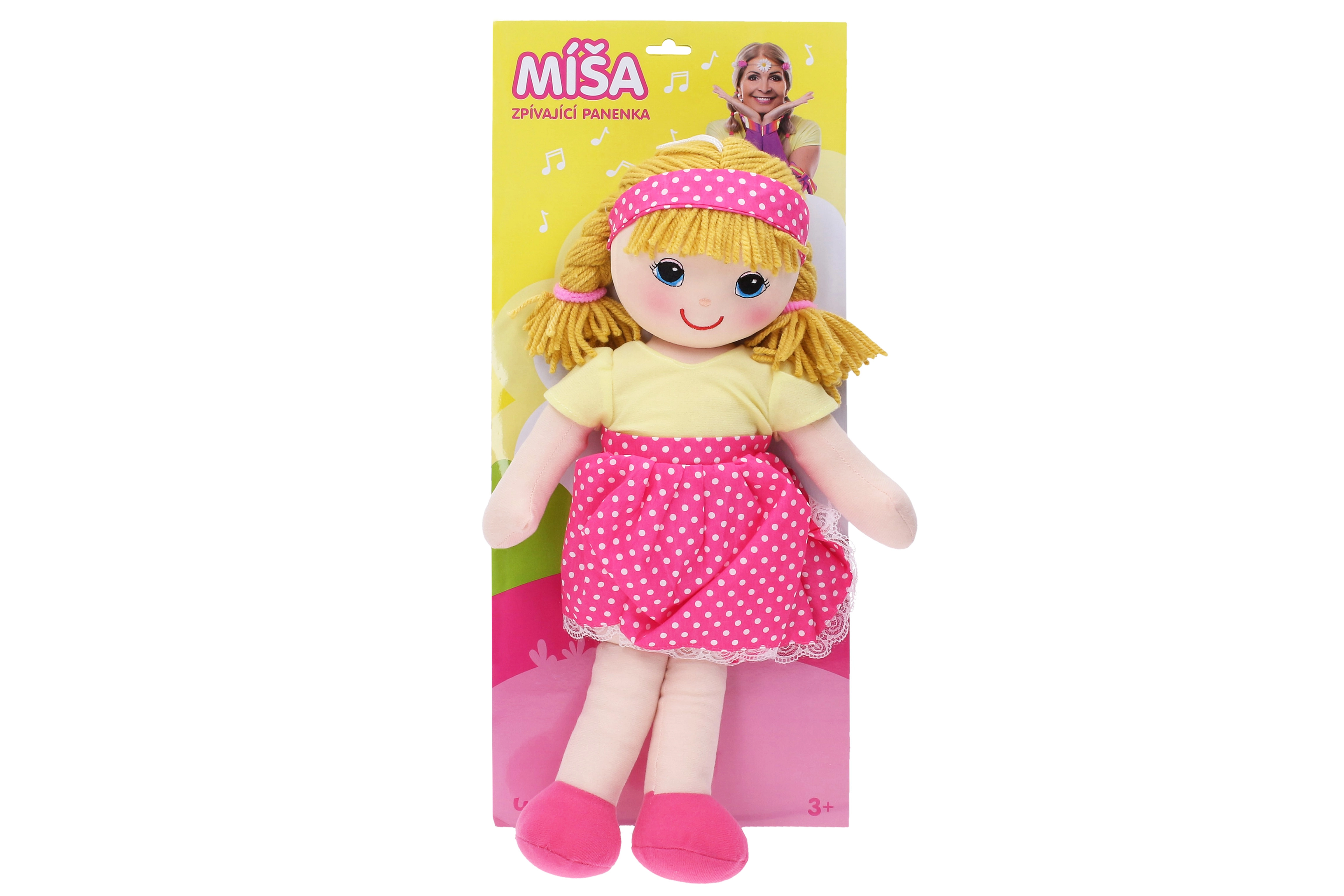 Αυτή η όμορφα κατασκευασμένη υφασμάτινη κούκλα, εμπνευσμένη από τη δημοφιλή ερμηνεύτρια παιδικών τραγουδιών Μίσα Ρούζιτσκοβα, είναι ιδανική επιλογή για όλα τα μικρά κορίτσια που αγαπούν τη μουσική και το παιχνίδι με κούκλες. Η κούκλα διαθέτει έναν απλό μηχανισμό που επιτρέπει την αναπαραγωγή επτά γνωστών τραγουδιών: