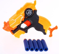 Περιλαμβάνει πιστόλι και 5 μαλακά βλήματα, ώστε τα παιδιά να απολαμβάνουν διασκεδαστικές βολές.