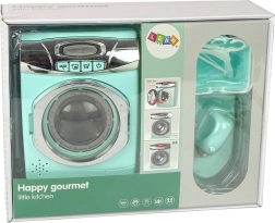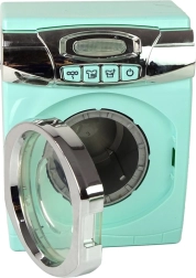 Με την τοποθέτηση 3 × AA μπαταριών, το πλυντήριο παράγει αυθεντικούς ήχους και περιστρέφει τον κάδο, ώστε τα παιδιά να μιμούνται πιστά το πλύσιμο και να δημιουργούν τα δικά τους οικιακά σενάρια.