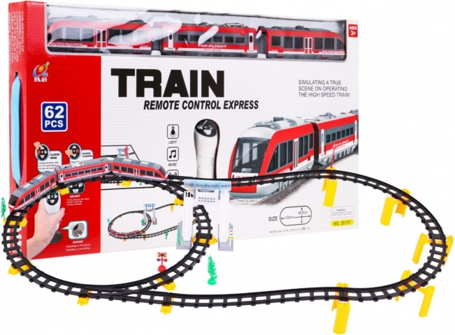 Ανακαλύψτε τη διασκέδαση με την τηλεκατευθυνόμενη σιδηροδρομική πίστα για παιδιά από 3 ετών. Το σετ με 62 τεμάχια προσφέρει διαδρομή έως 396 cm, κινείται μπροστά και πίσω, διαθέτει φωτεινά εφέ και ρεαλιστικούς ήχους κίνησης. Περιλαμβάνονται σταθμός, γέφυρες/υψομετρικές ανυψώσεις και διακοσμήσεις για δημιουργικό παιχνίδι.