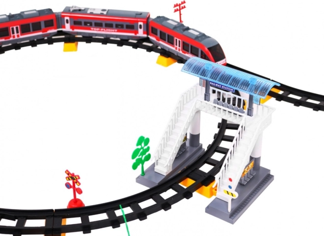 Χάρη στον πλούσιο εξοπλισμό, θα στήσετε εύκολα μια εντυπωσιακή διαδρομή με υπερυψωμένα τμήματα, κτίριο σταθμού και διακοσμητικά στοιχεία που ενισχύουν το δημιουργικό και θεματικό παιχνίδι. Η απλή συναρμολόγηση και τα ανθεκτικά πλαστικά κομμάτια είναι ιδανικά για καθημερινό παιχνίδι.
