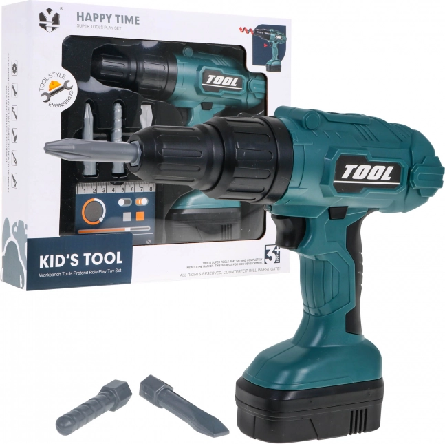 Περιλαμβάνονται τρεις προεκτάσεις: τρυπάνι, ίσια και σταυροκατσάβιδο. Τα παιδιά μαθαίνουν εύκολα να αλλάζουν μύτες και να δοκιμάζουν διαφορετικές εργασίες σαν αληθινοί τεχνίτες.