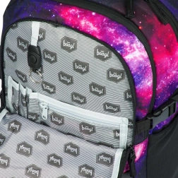 Η BAAGL Skate Galaxy είναι μια μελετημένη σχολική τσάντα για μαθητές που θέλουν πρακτικότητα και στιλ. Οι τρεις ανεξάρτητες θήκες διευκολύνουν την τακτοποίηση βιβλίων και τετραδίων, ενώ δεν λείπουν ο εσωτερικός οργανωτής και η επενδεδυμένη τσέπη για φορητό υπολογιστή ή tablet 15". Στο μπροστινό μέρος υπάρχουν δύο ιμάντες για στερέωση σκέιτμπορντ, ώστε να έχετε το σανίδι πάντα μαζί σας.
