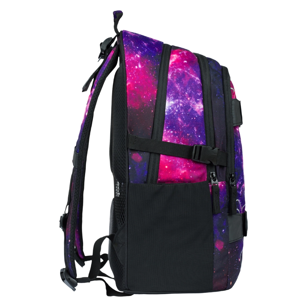 Ελαφριά και ανθεκτική σχολική τσάντα BAAGL Skate Galaxy με χωρητικότητα 25 l, προσφέρει εργονομικά διαμορφωμένη πλάτη, 3 ανεξάρτητες θήκες με οργανωτή και θήκη για φορητό υπολογιστή 15". Μπροστινοί ιμάντες για σκέιτμπορντ, πλαϊνές ελαστικές τσέπες για μπουκάλι, ανακλαστικά στοιχεία και βάρος μόλις 850 g την καθιστούν ιδανική επιλογή για το σχολείο και τον ελεύθερο χρόνο.