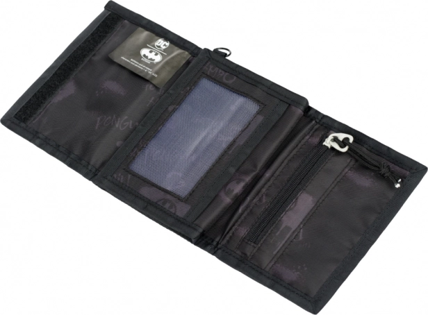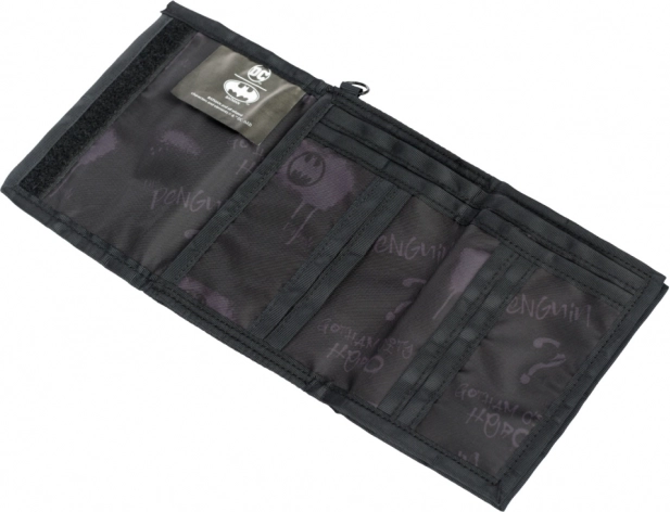 Αυτό το μοναδικό πορτοφόλι με επίσημη άδεια DC Comics διαθέτει εντυπωσιακό σχέδιο με θέμα τον Μπάτμαν. Είναι εξοπλισμένο με πολλές θήκες για κάρτες και μετρητά, εξασφαλίζοντας εξαιρετική οργάνωση των πολύτιμων αντικειμένων σας. Το πρακτικό κλείσιμο με βέλκρο και ο κρίκος για στερέωση σε καραμπίνα συμβάλλουν στη λειτουργικότητα και την ασφάλειά του.