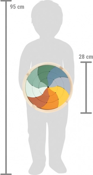 Αυτό το σχεδιαστικό ξύλινο παζλ σε μοντέρνα χρώματα προσφέρει ελεύθερο παιχνίδι στο πνεύμα της Montessori. Τα παιδιά εξασκούν την ταξινόμηση, τη συναρμολόγηση, τη δημιουργία μοτίβων και τη λογική σκέψη. Μετά τη συναρμολόγηση δημιουργείται ένα εντυπωσιακό μοτίβο μάνταλας, που μπορεί να χρησιμεύσει και ως διακόσμηση παιδικού δωματίου.