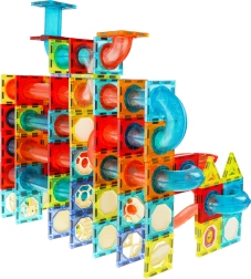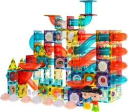Ανακαλύψτε ατελείωτη δημιουργικότητα με αυτό το μαγνητικό κατασκευαστικό σετ για παιδιά 292 τεμαχίων, που επιτρέπει την κατασκευή πιστών για μπίλιες σε οποιοδήποτε σχήμα. Τα κομμάτια από ποιοτικό πλαστικό συνδέονται εύκολα με ισχυρούς μαγνήτες, περιλαμβάνονται φωτεινές μονάδες και αναβοσβήνουσες μπίλιες με 3 λειτουργίες (γρήγορη/μεσαία/αργή) για ακόμη πιο διασκεδαστικό παιχνίδι. Στη συσκευασία θα βρείτε LED προβολείς, φωτεινές κάψουλες, δύο φιγούρες και όλες τις απαραίτητες μπαταρίες. Ιδανικό για τον αναπτυξιακό συντονισμό λεπτής κινητικότητας, τη χωρική αντίληψη και τη δημιουργικότητα παιδιών από 3 ετών.