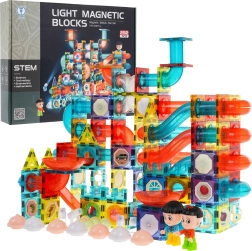 Αυτό το μεγάλο μαγνητικό κατασκευαστικό σετ (292 τεμάχια) προσφέρει στα παιδιά ώρες διασκέδασης και μάθησης. Χάρη στις στιβαρές μαγνητικές συνδέσεις δημιουργούνται σταθερές κατασκευές και πολύχρωμες πίστες για μπίλιες με φωτεινά εφέ. Περιλαμβάνονται κομμάτια με τροφοδοσία μπαταρίας, που φωτίζουν την πίστα και τις μπίλιες σε πολλές λειτουργίες αναβοσβήματος – έτσι τα παιδιά μπορούν εύκολα να επιλέξουν ρυθμό και στυλ παιχνιδιού.