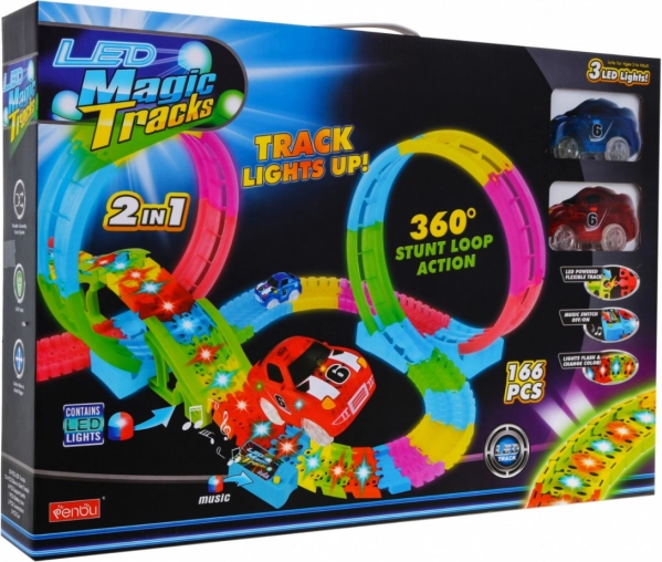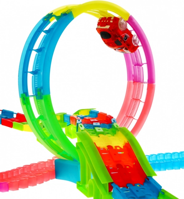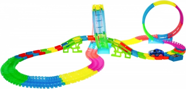 - Φθορίζουσα πίστα που λάμπει στο σκοτάδι, LED φωτισμός, ενσωματωμένο μουσικό πάνελ, βρόχοι 360°, υπερυψώσεις