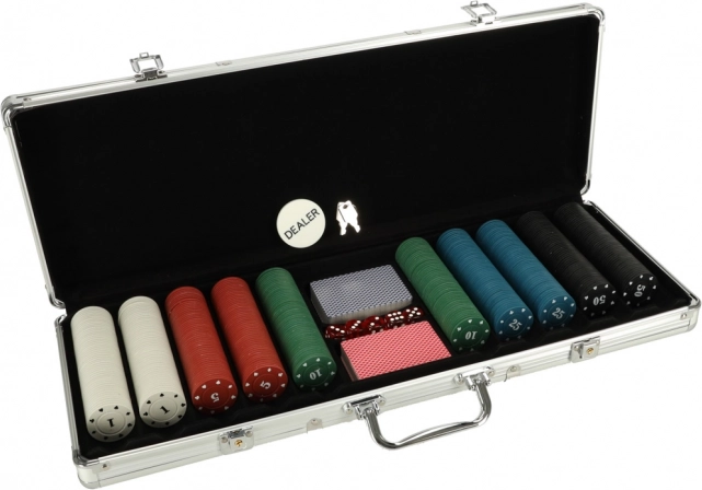 Το σετ πόκερ παρέχει όλα τα απαραίτητα για μακριά και συναρπαστικά παιχνίδια χάρη στις 500 μάρκες, τις δύο τράπουλες και τα επιπλέον εξαρτήματα.