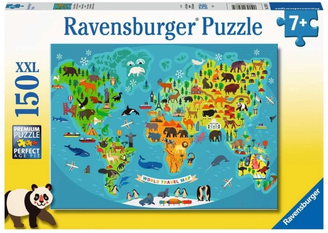 Το παζλ RAVENSBURGER με θέμα τον χάρτη του κόσμου και τα άγρια ζώα θα ενθουσιάσει όλους τους μικρούς εξερευνητές. Με 150 κομμάτια XXL, είναι ιδανικό για παιδιά που θέλουν να αναπτύξουν τις δεξιότητές τους και να γνωρίσουν νέες πληροφορίες για τη φύση και τη γεωγραφία. Η εικόνα μετά τη συναρμολόγηση μετρά περίπου 49 × 36 cm, ώστε να χωρά άνετα σε τραπέζι ή επιφάνεια παιχνιδιού.
