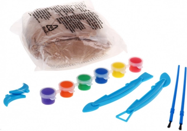 Όλα όσα χρειάζονται τα παιδιά: 800 g πηλού, 6 χρώματα, 2 πινέλα, 2 εργαλεία γλυπτικής, σύρμα κοπής με λαβές και πρακτική βάση.