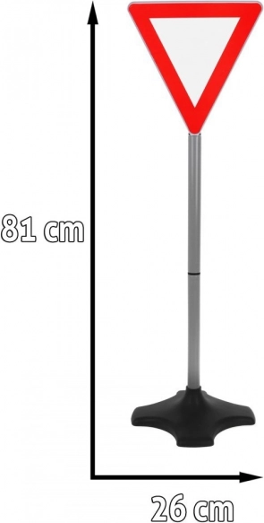 Στη συσκευασία θα βρείτε ΣΤΟΠ, υποχρεωτική στροφή δεξιά, παραχώρηση προτεραιότητας, οδός με προτεραιότητα και διάβαση πεζών – ιδανικό για δημιουργία παιδικού πάρκου κυκλοφοριακής αγωγής.