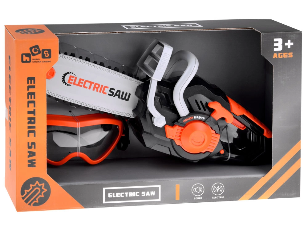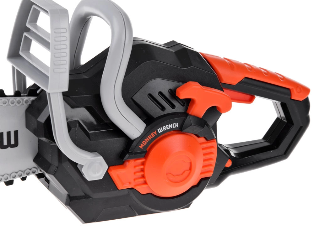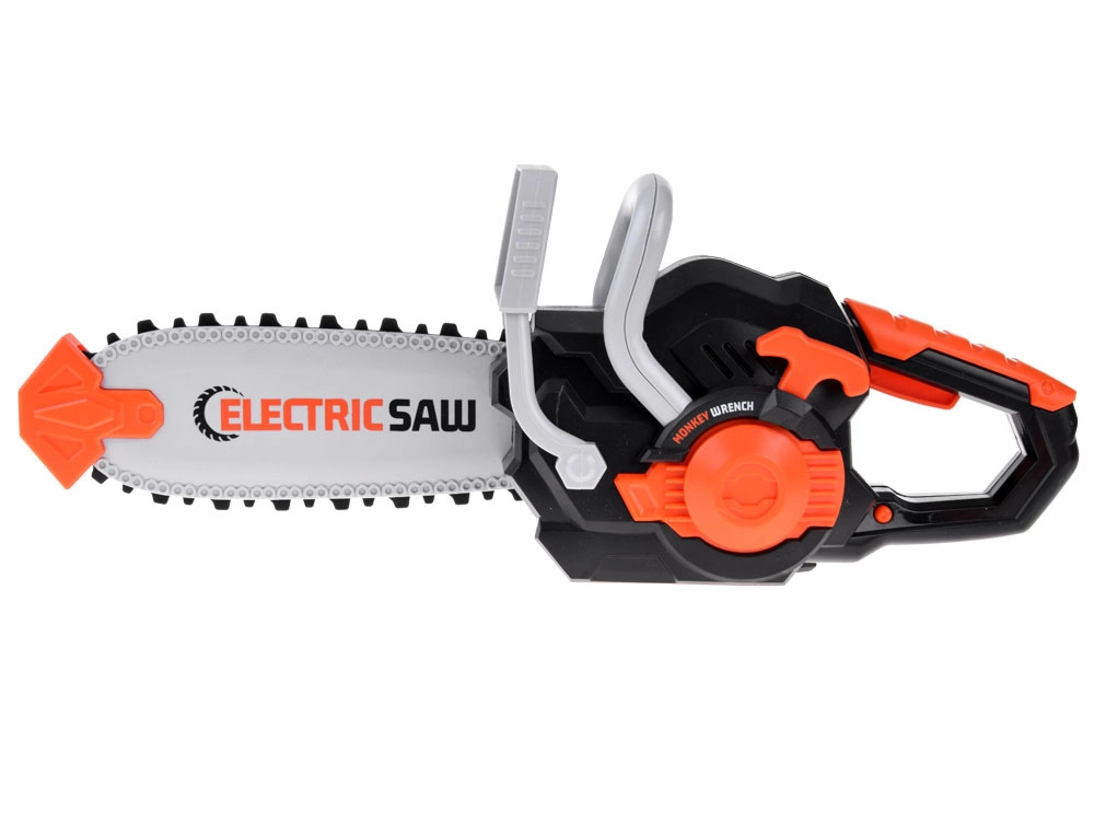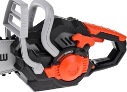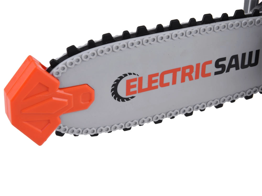 Ρεαλιστικό παιδικό ηλεκτρικό αλυσοπρίονο που προσφέρει ώρες ασφαλούς παιχνιδιού μικρών «κηπουρών». Διαθέτει κινούμενη λαστιχένια αλυσίδα, ηχητικά εφέ όπως ένα πραγματικό πριόνι και στη συσκευασία θα βρείτε και προστατευτικά γυαλιά για ακόμη πιο ασφαλή διασκέδαση. Η ελαφριά πλαστική κατασκευή, ο εύκολος χειρισμός και ο ελκυστικός μαύρο‑γκρι σχεδιασμός με πορτοκαλί στοιχεία θα ενθουσιάσουν κάθε παιδί.