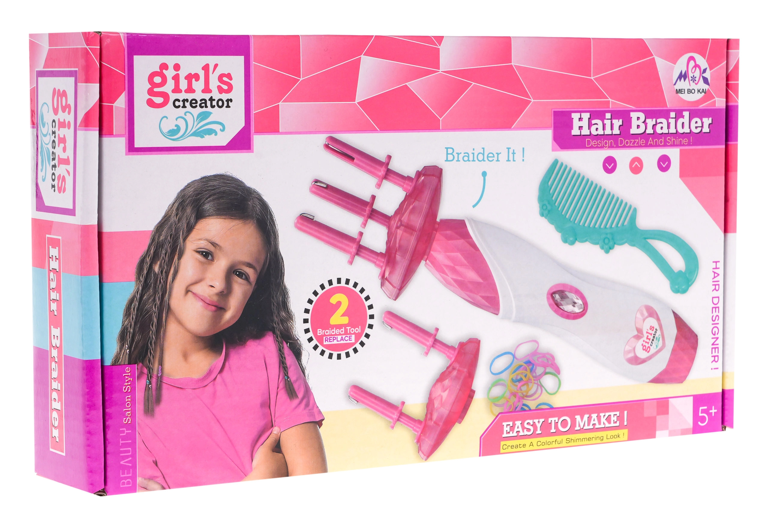Περιλαμβάνει 50 λαστιχάκια μαλλιών, εναλλάξιμα εξαρτήματα και χτένα, επιτρέποντας διάφορα στυλ και δημιουργικότητα.
