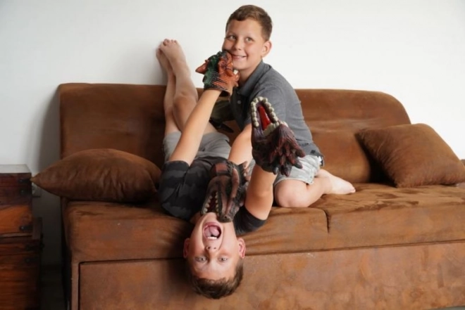 Μετατρέψτε κάθε παιχνίδι σε ένα μικρό δεινοσαυρικό θέατρο. Η λαστιχένια χειροκούκλα δεινόσαυρου έχει κινούμενη σιαγόνα, ώστε να ζωντανεύει εύκολα κάθε βρυχηθμός και δάγκωμα. Το μαλακό καουτσούκ είναι ευχάριστο στην αφή και προσαρμόζεται σε παιδικά και ενήλικα χέρια.