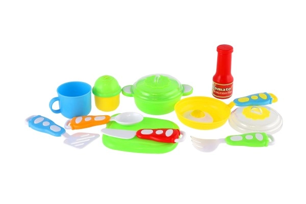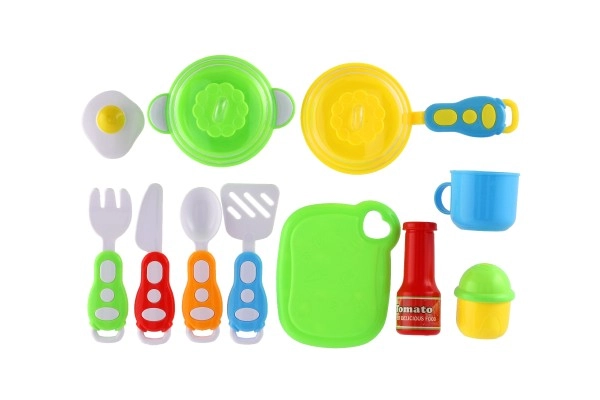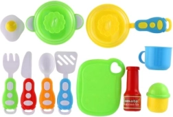Αναπτύξτε τη φαντασία των παιδιών με αυτό το πολύχρωμο σετ παιδικών σκευών 13 τεμαχίων, που προσφέρει ό,τι χρειάζεται για ρεαλιστικό παιχνίδι μαγειρέματος. Περιλαμβάνει τηγάνι και κατσαρολάκι με καπάκι, επιφάνεια κοπής, μαχαιροπίρουνα, κουπάκι, αυγό τηγανητό, «σάλτσα ντομάτας» και αλατιέρα. Ιδανικό για παιδιά από 3 ετών – για δημιουργικό, ασφαλές και εκπαιδευτικό παιχνίδι.