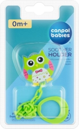 Πρακτική αλυσίδα πιπίλας με χαριτωμένη κουκουβάγια από τη μάρκα CANPOL babies που κρατά την πιπίλα πάντα πρόχειρη και καθαρή. Χάρη στο στιβαρό κλιπ, προσαρμόζεται εύκολα στα ρούχα και αποτρέπει την πτώση στο πάτωμα. Είναι κατασκευασμένη από ανθεκτικό πλαστικό, ελαφριά, χρωματιστή και κατάλληλη για καθημερινή χρήση. Ασφαλής στερέωση, υγιεινή και εύκολη συντήρηση σε ένα.