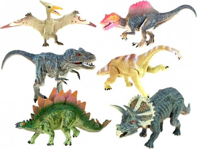 Το σετ περιλαμβάνει έξι διαφορετικούς δεινοσαύρους, καθένας άψογα κατασκευασμένος με κινούμενα μέρη για ακόμη πιο ενδιαφέρον παιχνίδι. Οι φιγούρες αναπτύσσουν τη φαντασία των παιδιών και μπορούν επίσης να χρησιμεύσουν ως εκπαιδευτικό βοήθημα για την εξερεύνηση των μυστικών της προϊστορίας.