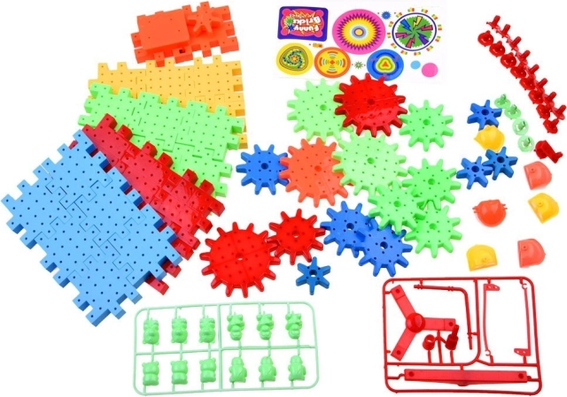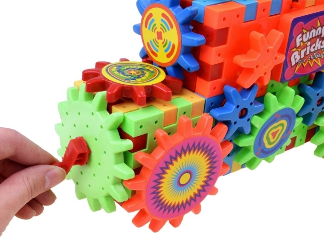 Το σετ περιλαμβάνει οδοντωτό γρανάζι που λειτουργεί με μπαταρία AA, με το οποίο τα παιδιά μπορούν να ζωντανέψουν τις κατασκευές τους.