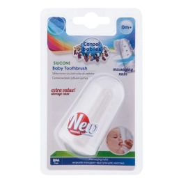 Η απαλή σιλικονούνα δακτυλική οδοντόβουρτσα CANPOL BABIES είναι ιδανική για την πρώτη στοματική υγιεινή των μωρών από τη γέννηση. Προσφέρει απαλό καθαρισμό των πρώτων δοντιών, μασάζ των ευαίσθητων ούλων και χάρη στην προστατευτική υγιεινή θήκη είναι τέλεια και για ταξίδια. Οι μαλακές τρίχες και τα προεξέχοντα σημεία μασάζ εξασφαλίζουν ασφαλή καθαρισμό χωρίς ερεθισμούς.