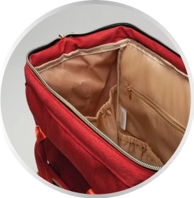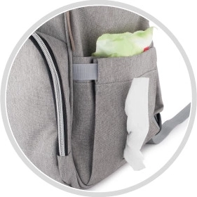 Έξυπνη διαρρύθμιση του σακιδίου με αδιάβροχη τσέπη και πλενόμενο στρωματάκι αλλαγής, ώστε όλα τα απαραίτητα να παραμένουν τακτοποιημένα και υγιεινά αποθηκευμένα.