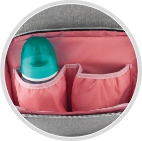 Η ενσωματωμένη θερμομονωτική τσέπη διατηρεί το ρόφημα περισσότερο στην επιθυμητή θερμοκρασία και οι ιμάντες επιτρέπουν την εύκολη στήριξη του σακιδίου στο καρότσι.