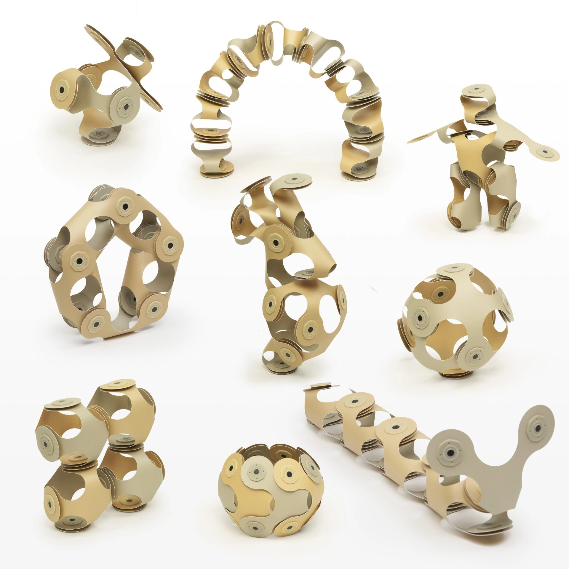 Με λίγα κομμάτια μπορείτε να δημιουργήσετε καμάρες, σφαίρες, φιγούρες, γέφυρες ή μπαλάκια. Η φαντασία δεν έχει όρια – έμπνευση περιλαμβάνεται στη συσκευασία.