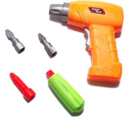 Πλαστικό τρυπάνι με εναλλάξιμα ακροφύσια και ρεαλιστικούς ήχους για αυθεντικό παιχνίδι.