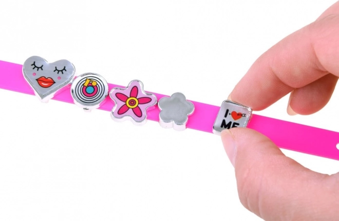 Το δημιουργικό σετ περιλαμβάνει ό,τι χρειάζεται για την κατασκευή όμορφων και ευφάνταστων βραχιολιών. 5 λουράκια σε διαφορετικά χρώματα με ρυθμιζόμενο κούμπωμα επιτρέπουν προσαρμογή σε διαφορετικά μεγέθη καρπού. Τα πλαστικά γραμματάκια και διακοσμητικά μπορούν να συνδυαστούν ελεύθερα για δημιουργία ονομάτων, συνθημάτων και μοτίβων – οι δυνατότητες είναι ατελείωτες! Αυτή η διασκέδαση αναπτύσσει παράλληλα τη δημιουργικότητα, τη δεξιοτεχνία και τη φαντασία.