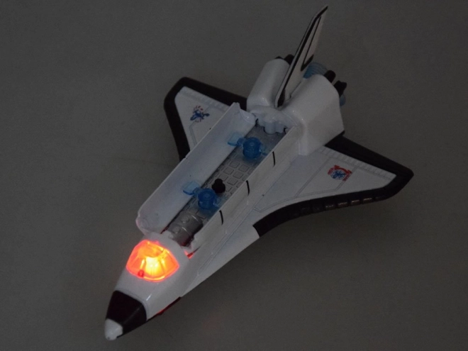 Αυτό το διαστημικό σκάφος είναι το όνειρο κάθε μικρού λάτρη του διαστήματος. Με τον συνδυασμό μετάλλου και πλαστικού παρέχει ρεαλιστικά φωτεινά και ηχητικά εφέ, τα οποία ενεργοποιούνται με ένα κουμπί που βρίσκεται κάτω από το ανοιγόμενο τμήμα του μηχανήματος. Με το πάτημα θα ακούσετε τον ήχο λειτουργίας του πυραυλοκινητήρα και θα ανάψει κόκκινο φως στον θάλαμο του πιλότου.